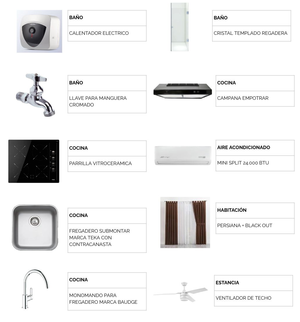 A continuación enlistamos los muebles y accesorios incluidos en el paquete de equipamiento de los departamentos en Casa Habanero. Para cotizar el amueblado de tu departamento por favor contáctanos en el siguiente número de WhatsApp: (984) 233 4431